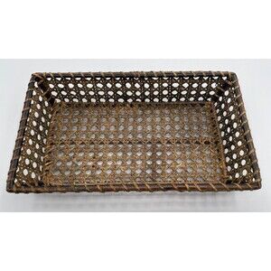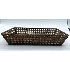 Vintage Cane Rattan Guest Towel Napkin Holder Tray 10" x 6" Brown