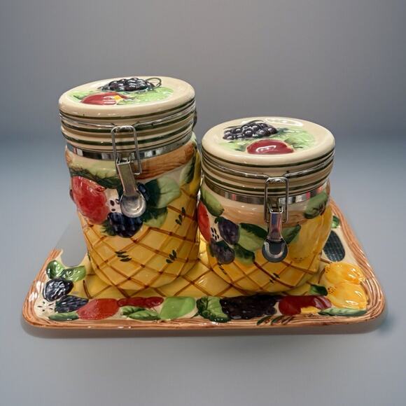 Vintage Canister Set Fruit Gourmet Home 3 Pc Retro Boho Rockabilly Food Seal 70s