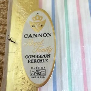 Up for sale is a beautiful vintage Cannon Combspun Percale flat sheet in original packaging. Made of 100% cotton with a combed, percale weave, offering a crisp and breathable feel that improves with wash. Packaged in the distinctive 'Royal Family' Cannon package, characteristic of mid-20th century bedding.