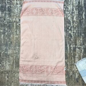 Bath towel is a peach/pink color and does have a dark stain in 2 places - see pics. 21”x41”