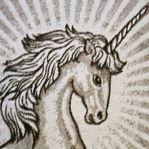 Vintage Cannon Ibena Unicorn Blanket Reversible Brown Soft Made In Greece 57x77"