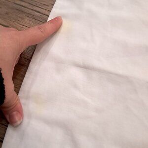 Cream/off white with slight yellowy tinge. Some yellow spots as shown.
