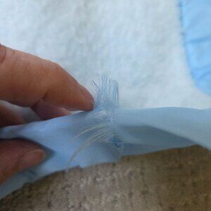 There is a small tear with fraying on the satin trim in one spot as shown in the next to last photo.