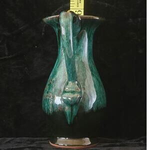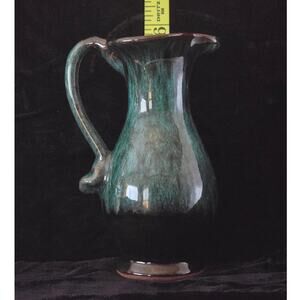 This is a charming vintage Canuck LaBella Pottery souvenir pitcher. It features a beautiful blue drip glaze and is made of red clay. The pitcher stands 5.5" tall and is a piece of Evangeline ware from Boissevain, Canada. It's a delightful collectible that would add a touch of nostalgia to any home.