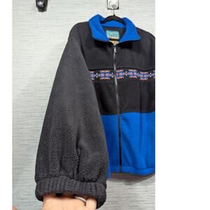 Vintage Canyon Guide Outfitters Men's Sweater Jacket / Size-Large / Color-Black, Blue / Pre-owned / Two Front Pockets, Fully Zip Up, Soft, Caller / Measurements- Pit To Pit 25" Inches, Arm Length 24.5" Inches, Shoulder To Hem 26.5" Inches /