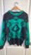 Vintage Canyon River Blues Acrylic and Wool Emerald Green and Black Knit Sweater