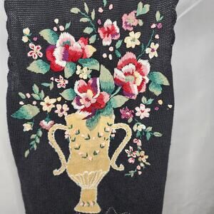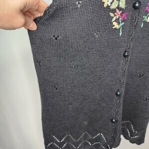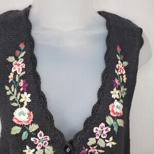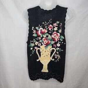 Vintage Capacity 90's Black V Neck Women's Embroidered Flowers Button Front Vest