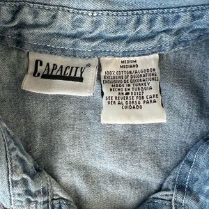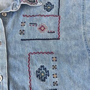 Vintage Capacity Light Wash Embroidered Full Sleeve Chambray Shirt Women’s M
