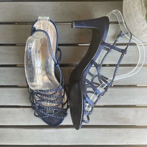 Vintage Caparros Navy Studded Formal Heel Women's 8 Strappy Prom Wedding Pump