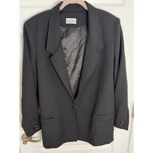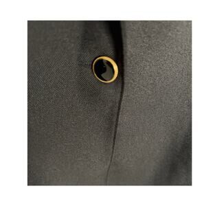 Timeless and sophisticated, this vintage black blazer from Cape Cod Match-Mates is a classic wardrobe staple. Made in the USA from stretch fabric, it features a sleek single-button front, gold accent cuff buttons, and a lightly padded shoulder design for a structured fit. This versatile piece can easily transition from professional to casual chic and is perfect for layering over blouses, dresses, or tees.