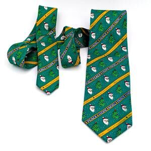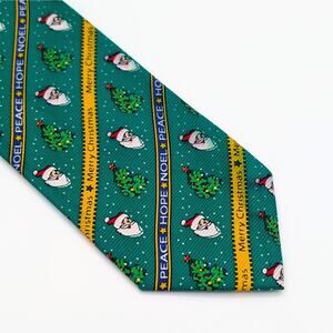 Vintage Cape Cod Neckwear Repp Tie Novelty Christmas Santa Peace Hope Noel Green