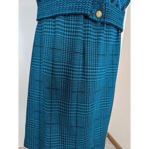 Vintage Cape Cod Sportswear Green Houndstooth Sweater Skirt 2 Set Women's Medium