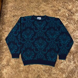 Vintage Cape Cod Sportswear Knit Sweater Crewneck Navy/Turquoise Medium
