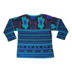 Vintage Cape Cod Sportswear Teal Floral Long Sleeve Knit Top Size Large