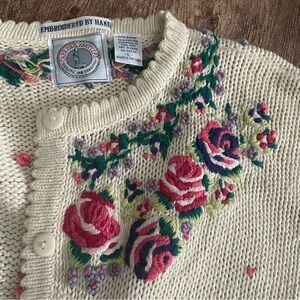 Vintage Cape Isle Knitters Floral Hand Embroidered Cardigan Size Large