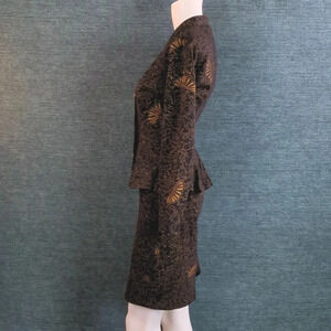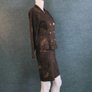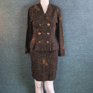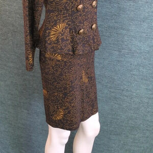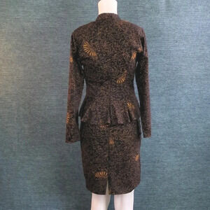 The skirt has a smooth, flattering fit, without a waistband. The jacket flares around the hips in a peplum fashion.