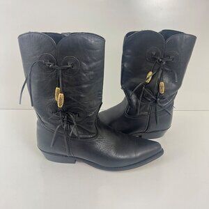 Vintage Capezio Black Leather Western Boots Trixie Beaded Fringe Size 8.5M