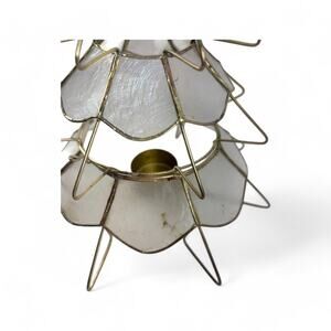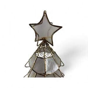 Vintage Capiz Shell Christmas Tree Candle Holder with Brass Frame Star Topper
