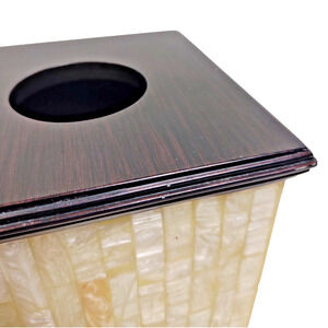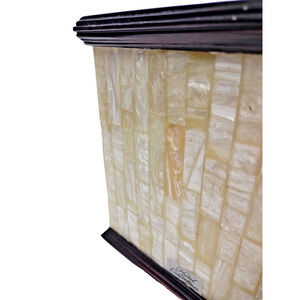 Vintage Capiz Tiled Mother Of Pearl Tissue Cover by Hotel Collection is in used, but in good condition.