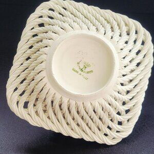 Vintage Capodimonte Ceramic Handled Wicker Basket Pink Yellow Rose Made in Italy