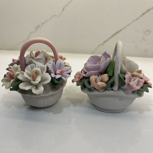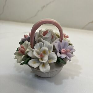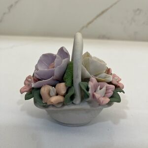 Charming floral basket home accent. Featuring delicate pink, purple, and white flowers, this piece adds a touch of elegance to any room.