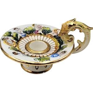Vintage Capodimonte Italian Pottery Hand Painted Candle Holder Gold Numbered