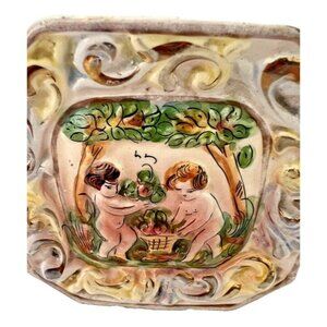 Vintage Capodimonte Italy Hand Painted Porcelain Cherub Trinket Dish Wall Hanging