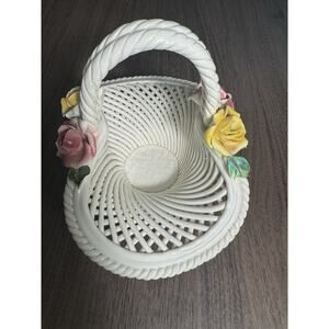 Vintage Capodimonte Porcelain Flower Basket. hand made in Italy