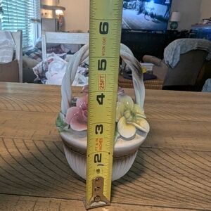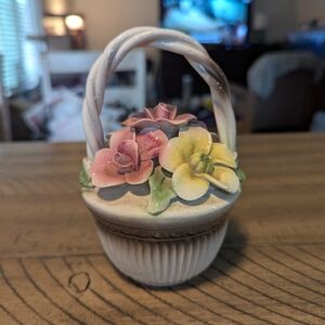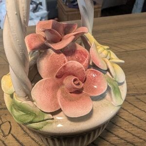 Vintage Capodimonte Porcelain Flowers In Round Basket Made In Italy Decor MCM