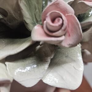 Vintage Capodimonte Porcelain Pink Roses Floral Arrangement Bouquet in Vase in great condition. There are some repairs made and a few chips on the flower/leaves as shown in photos.