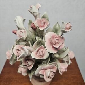 Vintage Capodimonte Porcelain Pink Roses Floral Arrangement Bouquet in Vase