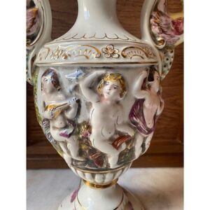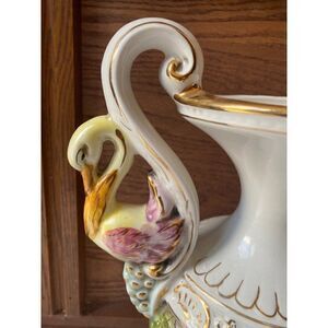 Vintage Capodimonte Porcelain Vase Cherubs Satyrs Swan Handles Italian