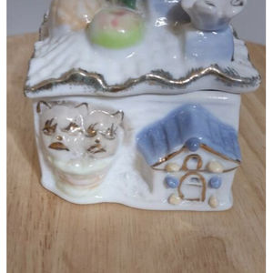 Vintage Capodimonte style Ceramic Square Covered Trinket Dish with Flowers.