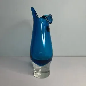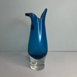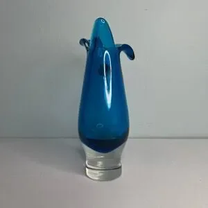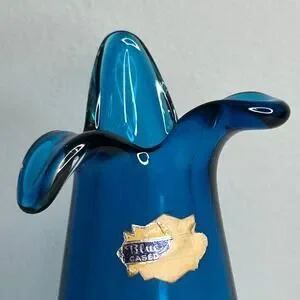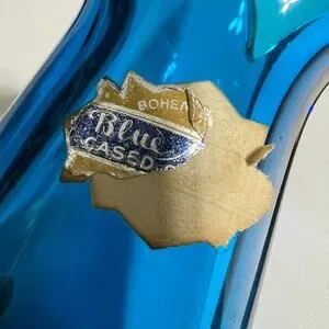 Vintage Capri Blue Czech Bohemian Sommerso Case Glass Vase Hand Blown Art