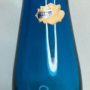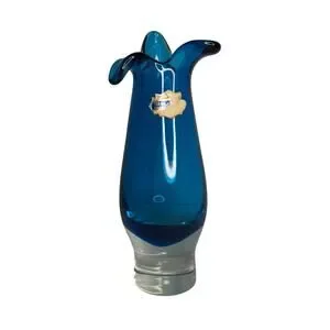 A wonderful example of mid-twentieth century Czech-created sculptural Bohemia sommerso/case art glass. The original foil label sticker is only partially there, but it clearly states that this is Bohemian, Blue, and is Cased. This style is similar to some mid-century Italian Murano pieces.