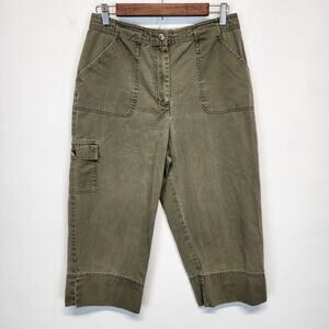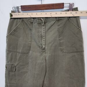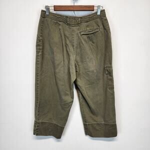 Vintage Capri Cargo Pants Size 12P Green Khaki Cotton Straight Duck Head Y2K