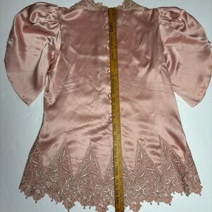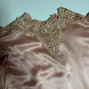Vintage Capriccio Blush Pink 100% Silk Charmeuse Blouse Sz 10 Embroidered Lace