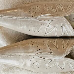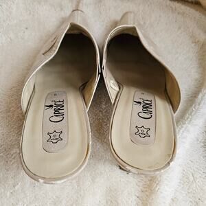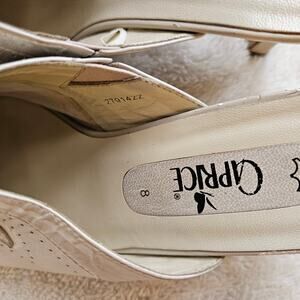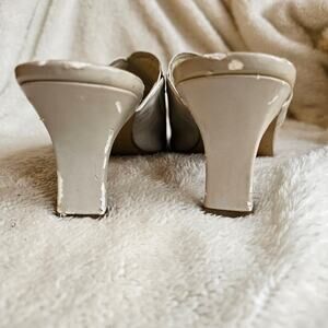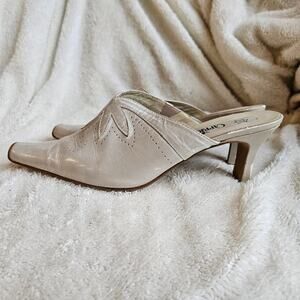 Vintage Caprice Women Square Toe Leather Slip On Mule Heels Office Size 8 Cream