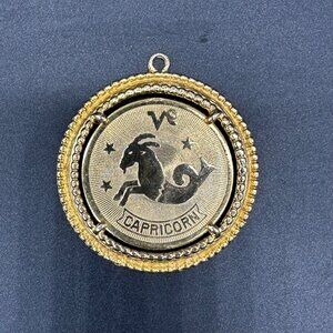 Vintage Capricorn Horoscope Necklace Pendant Goat Gold Toned Zodiac 1970s
