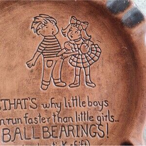Humorous vintage car culture humor ashtray. Was never used for ashes. A mother made one for a son and one for her husband (Other was in another listing and previously sold).