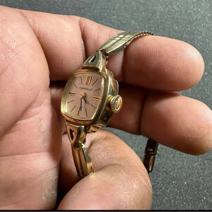Vintage Caravelle N7 Ladies Cocktail Watch Gold Tone Mechanical Wind Up Working shows signs of wear such as scratches on case band and crystal see pictures for reference