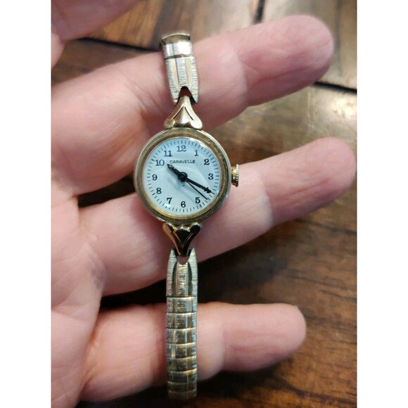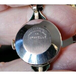 The Vintage Caravelle Women's Watch features a 10k RGP bezel and a band made by Speidel in the USA. This stylish wristwatch is designed for women and is a classic piece with a touch of retro charm. The Swiss-made watch is not currently in working condition, but it can be repaired or used as a vintage accessory for those who appreciate historical timepieces.