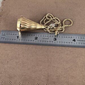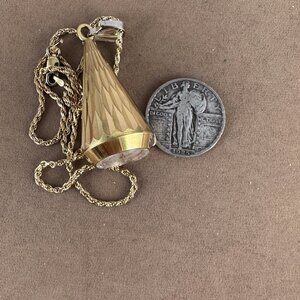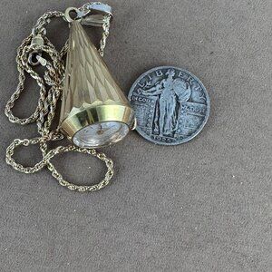 Vintage Caravelle made by Bulova, in very good Condition 7 Jewel Pendant Gold Plated Watch Scratch Free Crystal Diamond Cut Tear Drop Cone Shape NEW 24 Inch Gold Vermeil 925 Silver 2MM Rope Necklace Estate find Pre Owned 1.75 inch tall 3/4 inch diameter makes a great Nurses Gift