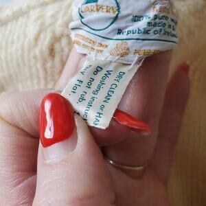 Tag reads: Carbery, Hand knit, 100% pure wool, Made in the Republic of Ireland