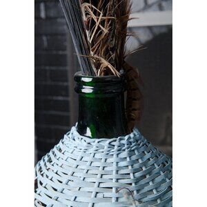 Vintage Carboy Demijohn Green Glass Wine Bottle In Blue Wicker Basket With Straw Local Pick Up Available