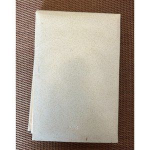 Never used score pad for bridge decorated with a floral border, clubs, diamonds, hearts, and spades in gold on a vinyl cover.