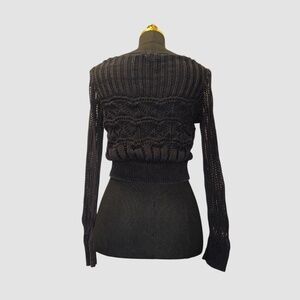 · Black knitted loose cropped cardigan with intricate detailing