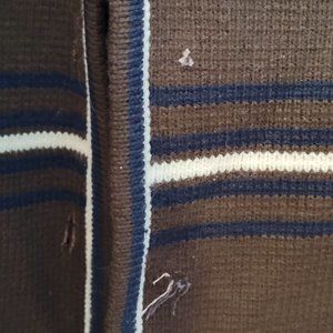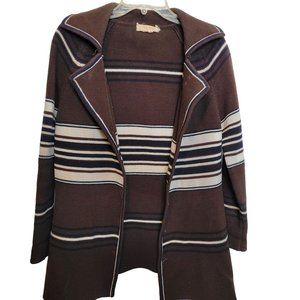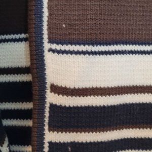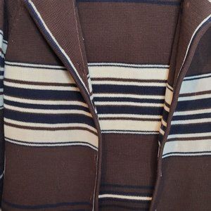 Vintage Cardigan Brown Cream Stripes Collared Acrylic Hand Loomed No Buttons