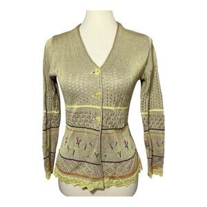 Vintage Cardigan Knit Sweater Poetcore Cottage Crochet Floral Neutral Cream