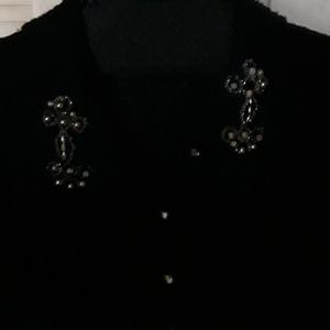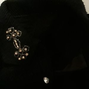 Vintage black sweater with beading detail and crystal buttons. Buttons are not as old as the sweater, added about18 years ago.